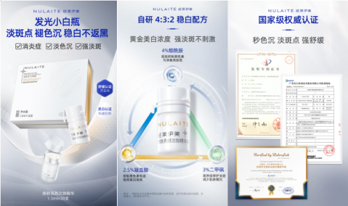 针对这一问题,纽莱伊美焕肤亮颜次抛精华液是你的不二之选。这款精华液自研4:3:2黄金稳白配方,通过温和美白尖子生烟酰胺、二甲砜、凝血酸高效配比,在修复色沉刺激的同时,还能焕白透亮全脸,拯救日晒脸。